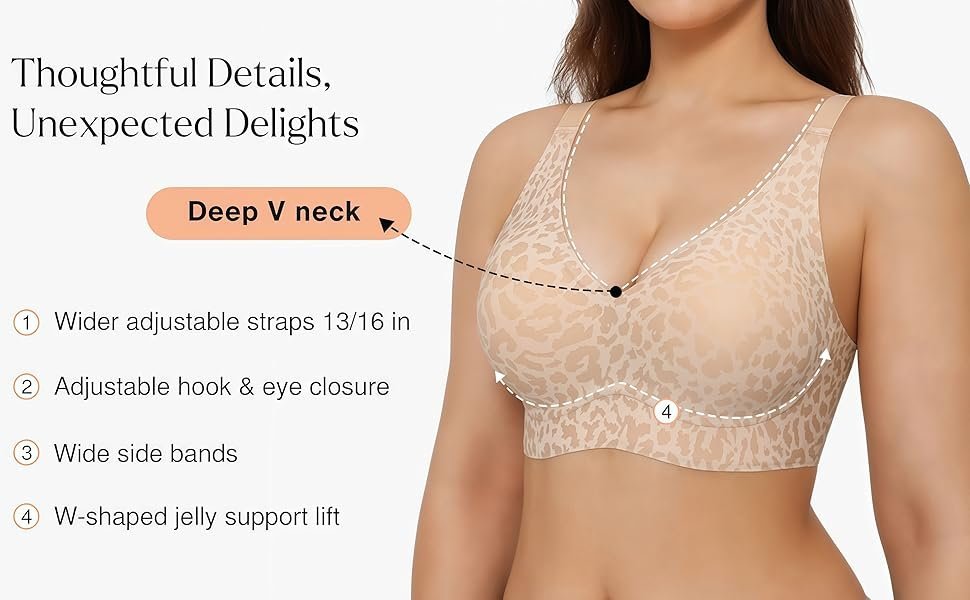 Featuring an innovative jelly strip support system instead of traditional hard underwire, it provides just the right amount of lift and gathering to enhance your natural curves softly. The full-wrap design evenly distributes pressure, preventing tightness, red marks, or strain even during extended daily wear.